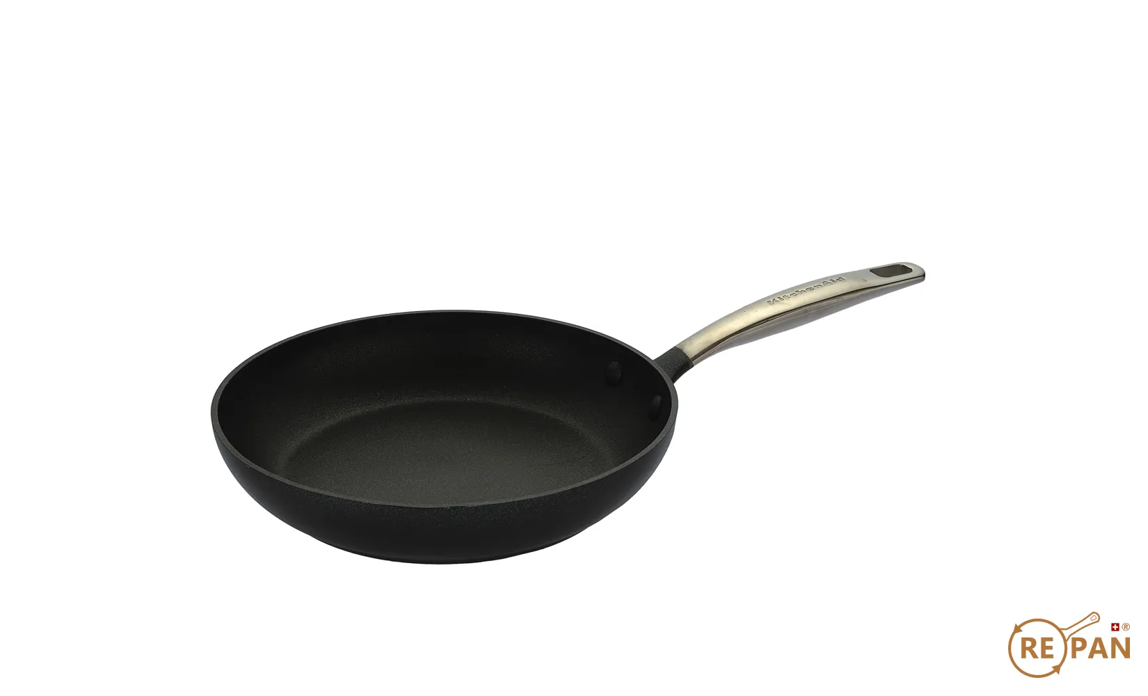 Tolle KitchenAid Aluminumpfanne mit elegantem Metallstiel, neu beschichtet durch RePan mit einer noch besseren keramikverstärkten Anti-Haftbeschichtung als neu.