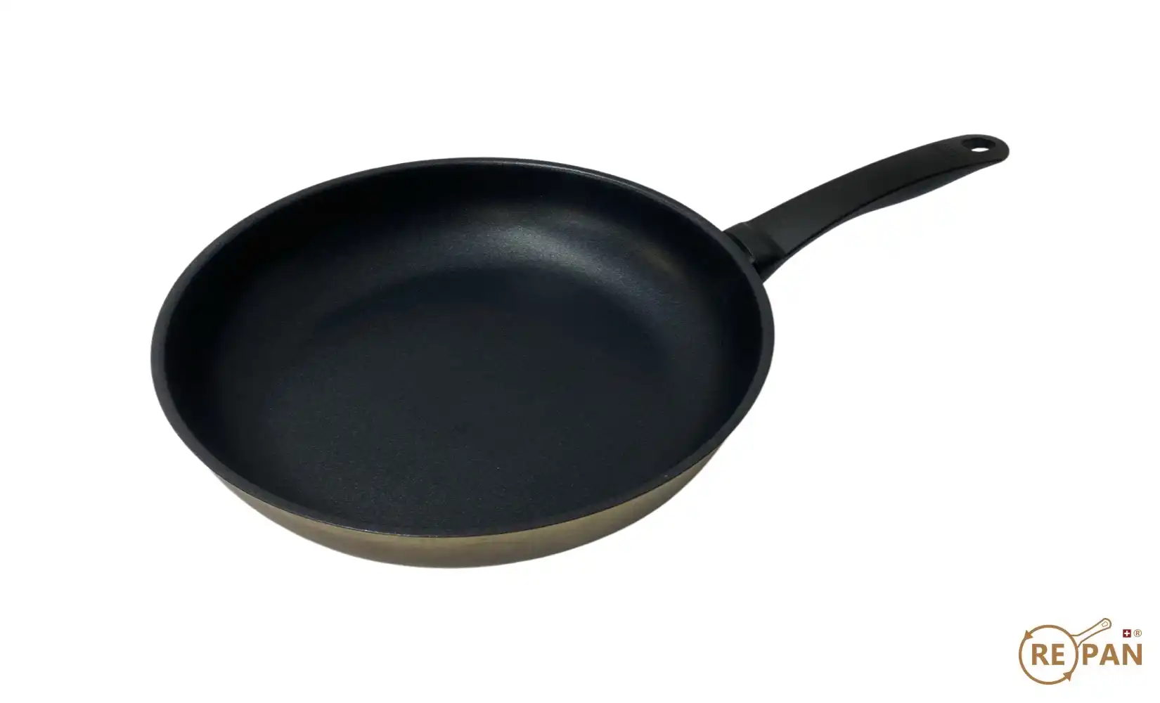 Schweizer Design steckt in der Kuhn Rikon „Classic“ aus Edelstahl mit Bakelitstiel. Die Modelle gehen von Bräter, Wokpfannen, Bratpfannen bis Schmorpfannen. RePan erhält das Schweizer Design, Material und Ressourcen und beschichtet mit langlebigster Beschichtung neu. Qualität aus der Region mit bis zu 95% weniger Ressourcenverbrauch.